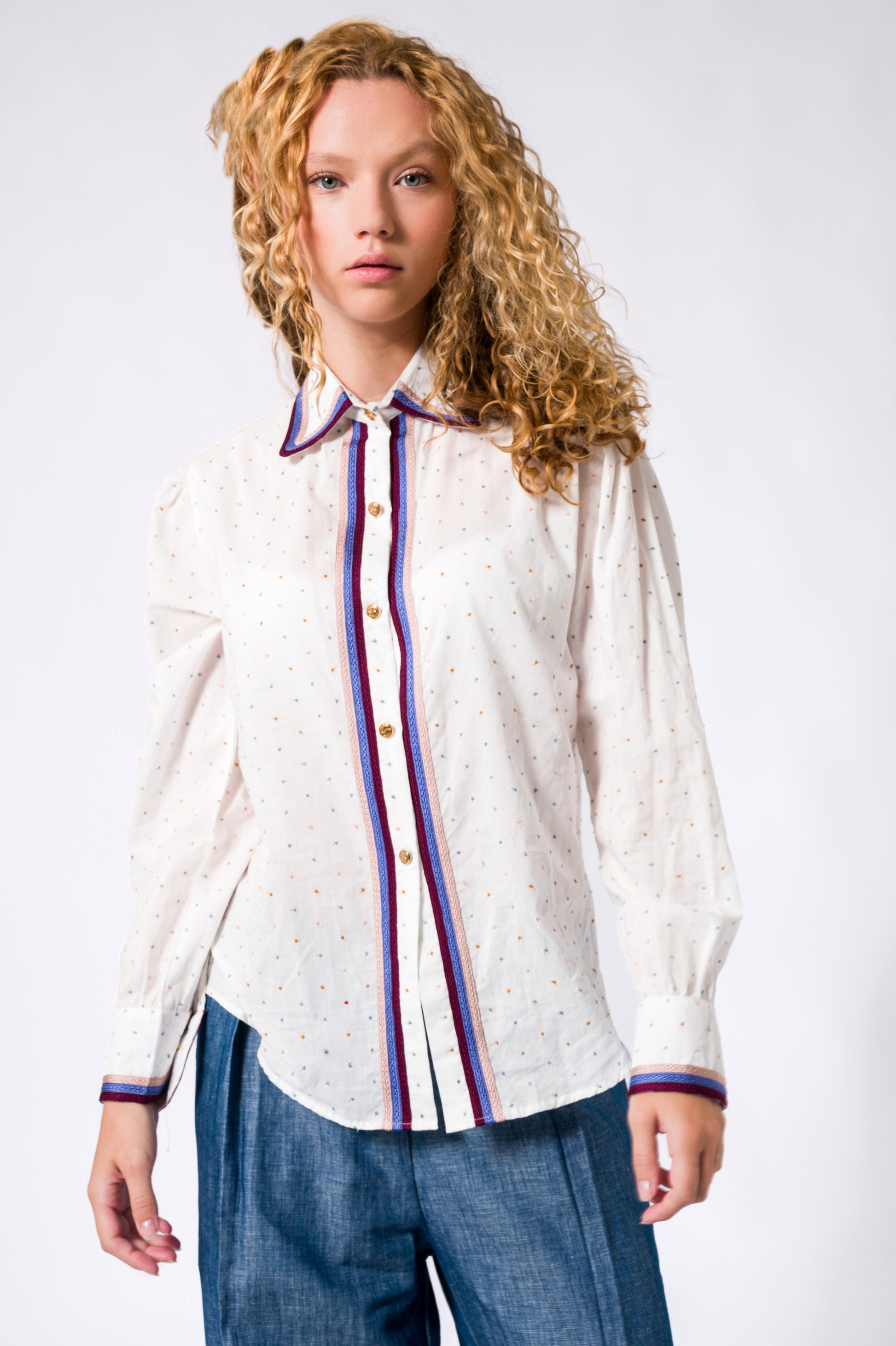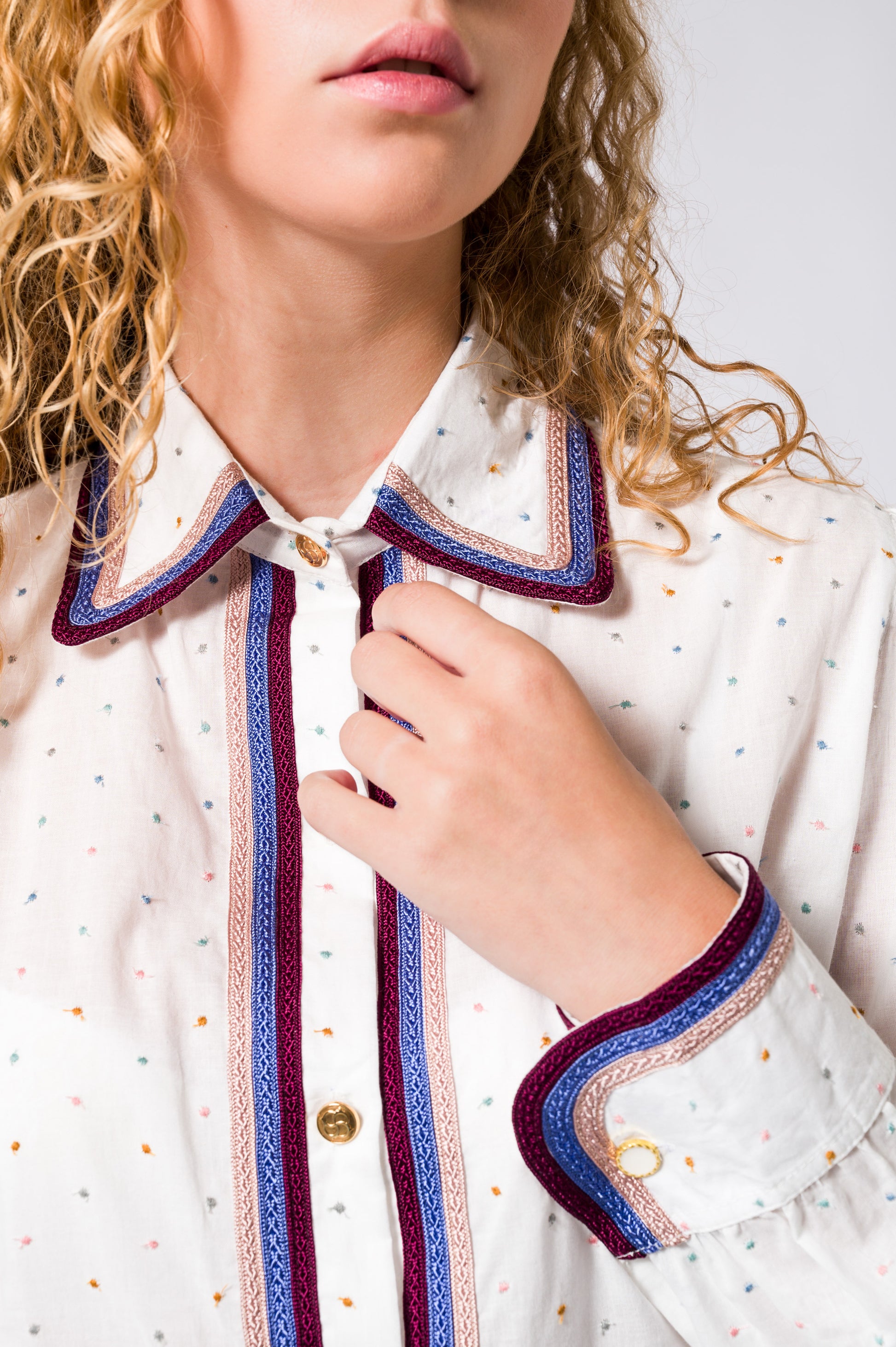 A unique and elegant shirt embellished with handweaved passementerie details: