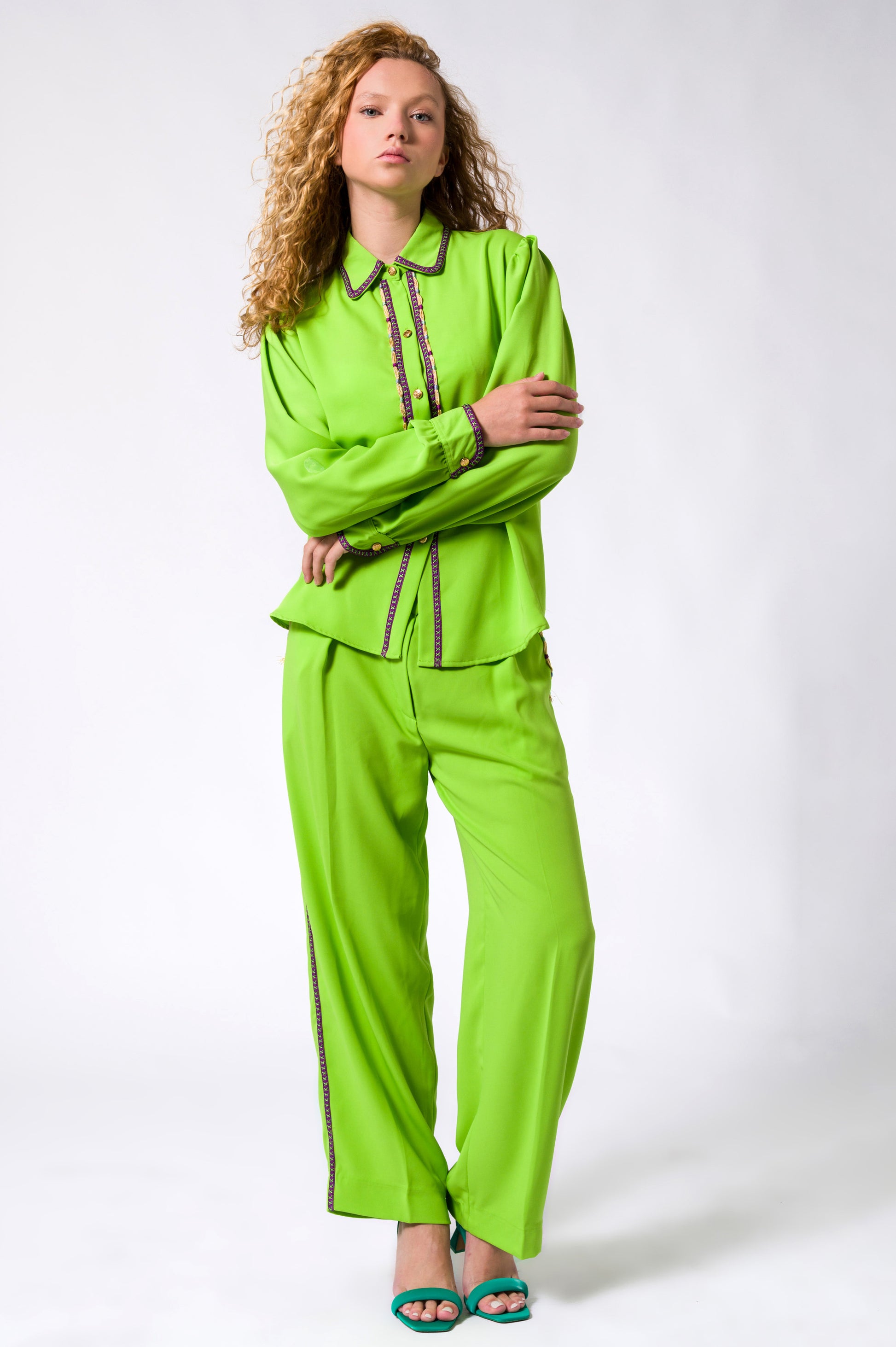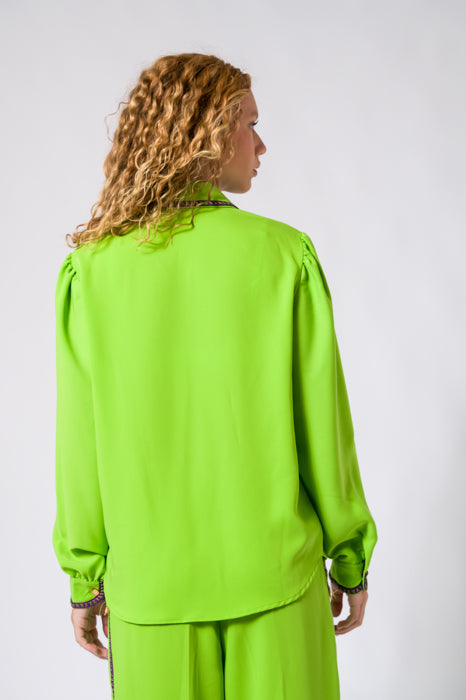 Flowy and colorful shirt featuring artful details for even style on the colar and around  button fastening with Sanaui logo buttons.