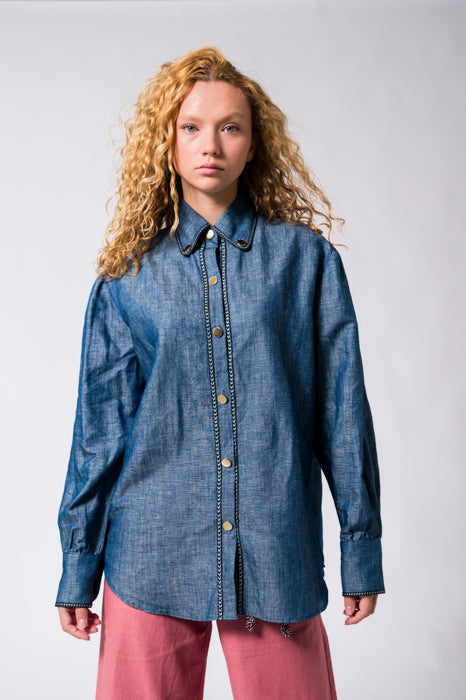A unique and elegant shirt embellished with handweaved passementerie details: